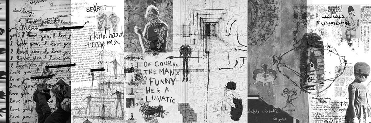 The chaos depicted in this mixed media work represents the disorientation and schizophrenia resulting from the multiple traumas of living in today’s polarized and contentious society in which everyone is complaining, angry, or in denial of reality.